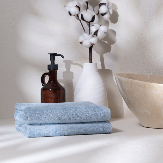 Feather & Spun 100% Organic Hand Towel | Lavender Fragrance | Oeko-TEX® Standard 100 | Double Needle Stitch | Anti Microbial | 100% Cotton - 550 GSM | 45 cms x 76 cms - Skywave Blue | Pack of 2