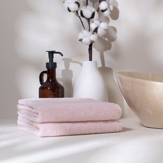 Feather & Spun Bamboo Cotton Face Towel | Lavender Fragrance | Oeko-TEX® Standard 100 | Double Needle Stitch | Anti Microbial | 600 GSM | 33 cms x 33 cms - Petal Pink | Pack of 4