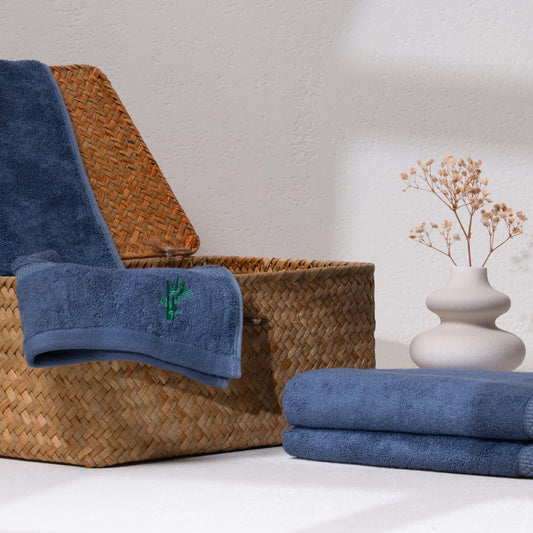 Feather & Spun Bamboo Cotton Hand Towel | Lavender Fragrance | Oeko-TEX® Standard 100 | Double Needle Stitch | Anti Microbial | 600 GSM | 40 cms x 71 cms - Midnight Indigo | Pack of 2
