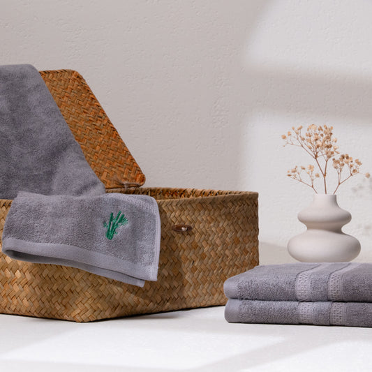 Feather & Spun Bamboo Cotton Hand Towel | Lavender Fragrance | Oeko-TEX® Standard 100 | Double Needle Stitch | Anti Microbial | 600 GSM | 40 cms x 71 cms - Smoke Grey | Pack of 2