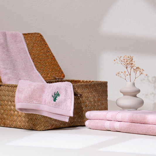 Feather & Spun Bamboo Cotton Hand Towel | Lavender Fragrance | Oeko-TEX® Standard 100 | Double Needle Stitch | Anti Microbial | 600 GSM | 40 cms x 71 cms - Petal Pink | Pack of 2
